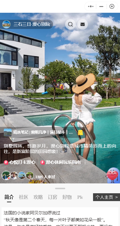 2、专属官网,有里有面——颜值美图,酒店简介,社区,攻略超前功能,玩活私域流量;